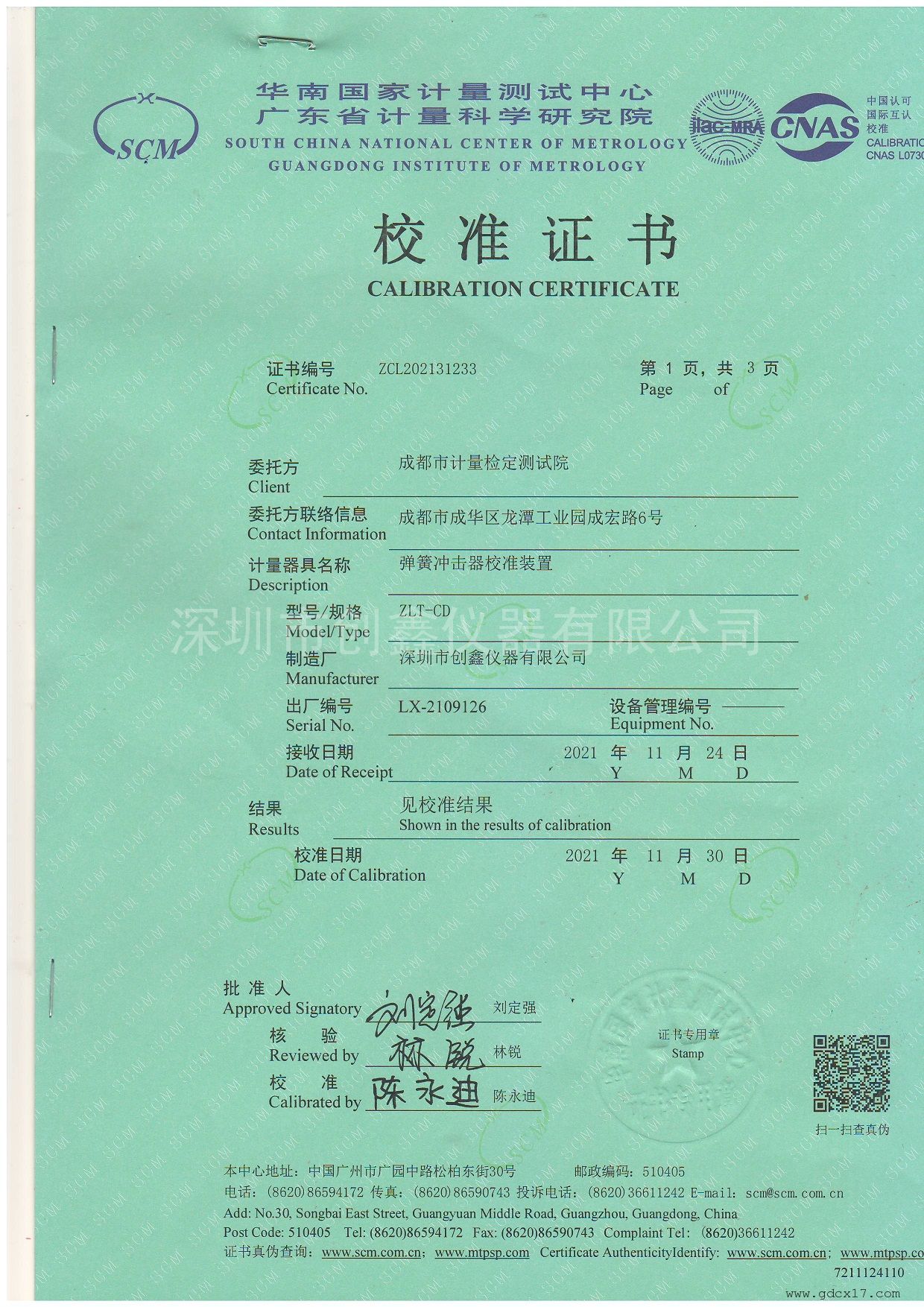 慶祝成都市計(jì)量檢定測(cè)試院訂購彈簧沖擊錘校準(zhǔn)裝置